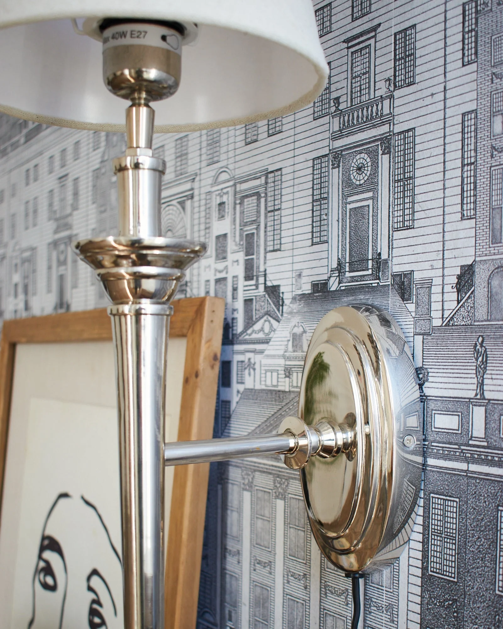 L'applique in alluminio cromato Dorset è realizzata in alluminio con elegante finitura cromata e accompagnata da paralume in cotone di colore ecru. Le sue generose dimensioni, la particolare lavorazione e la finitura cromata color argento lucido sono carattere distintivo e rendono questa lampada un elemento di arredo classico e raffinato. Questa lampada da parete è dotata di cavo esterno con presa elettrica e pulsante di accensione che la rendono pronta all'utilizzo anche in mancanza di predisposizione a muro.
