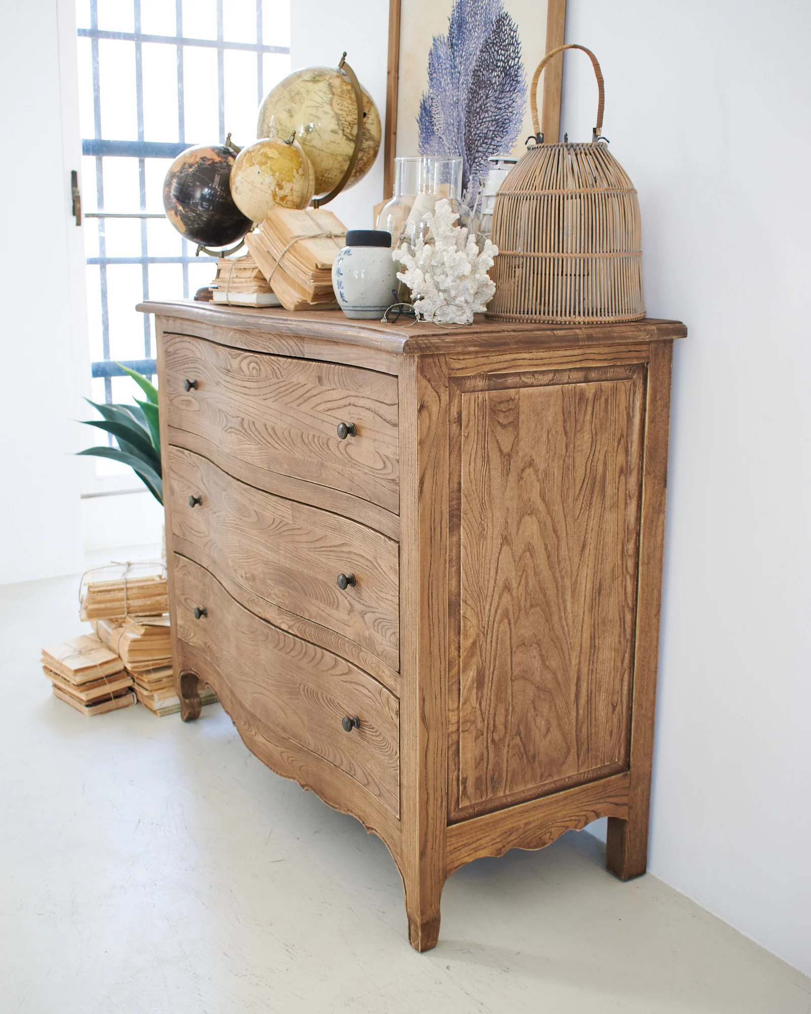 Il cassettone in legno Grange è uno spazioso mobile realizzato in legno di olmo di recupero di alta qualità. Presenta tre grandi cassetti realizzati con accurata lavorazione artigianale e pregevoli modanature che ne ingentiliscono le forme. Una cassettiera di grande eleganza e fascino che con il suo stile classico rappresenta la scelta ideale per arredare con stile la tua casa.