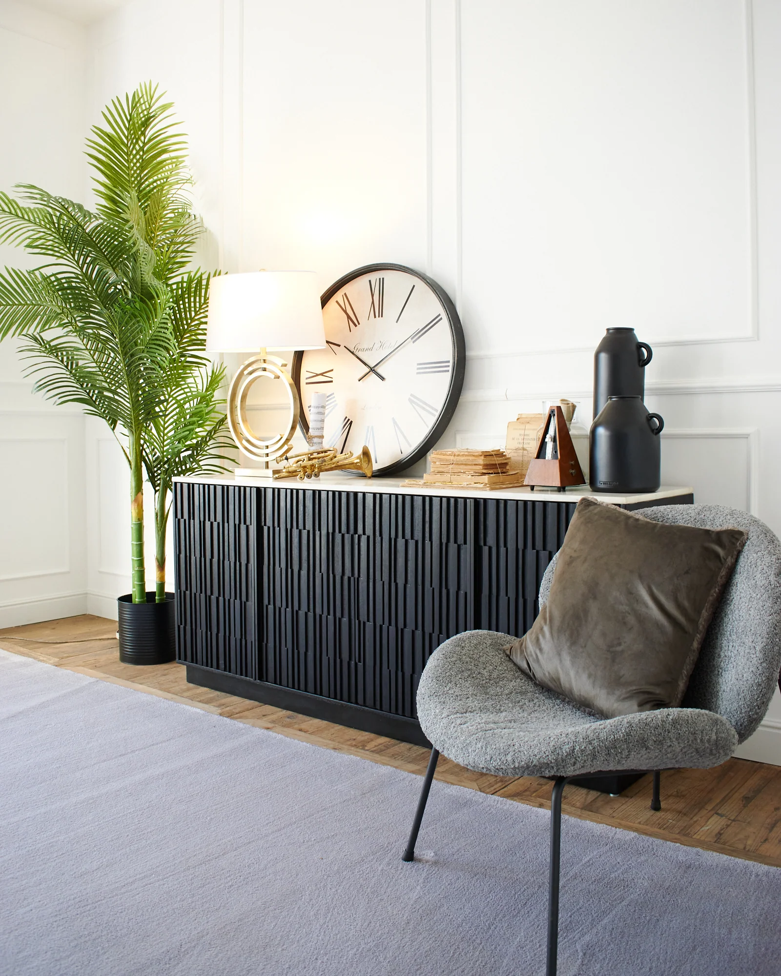 La credenza in legno massello 5th Avenue è una credenza moderna di design, caratterizzata da 4 originali ante dalla pregiata lavorazione materica e tridimensionale, che porta l'atmosfera newyorkese direttamente nella tua casa. Uno stile unico e prezioso esaltato dalla sapiente lavorazione artigianale del legno di mango qui reso ancora più esclusivo dalla scelta del colore nero e dall'abbinamento con il top in marmo bianco.