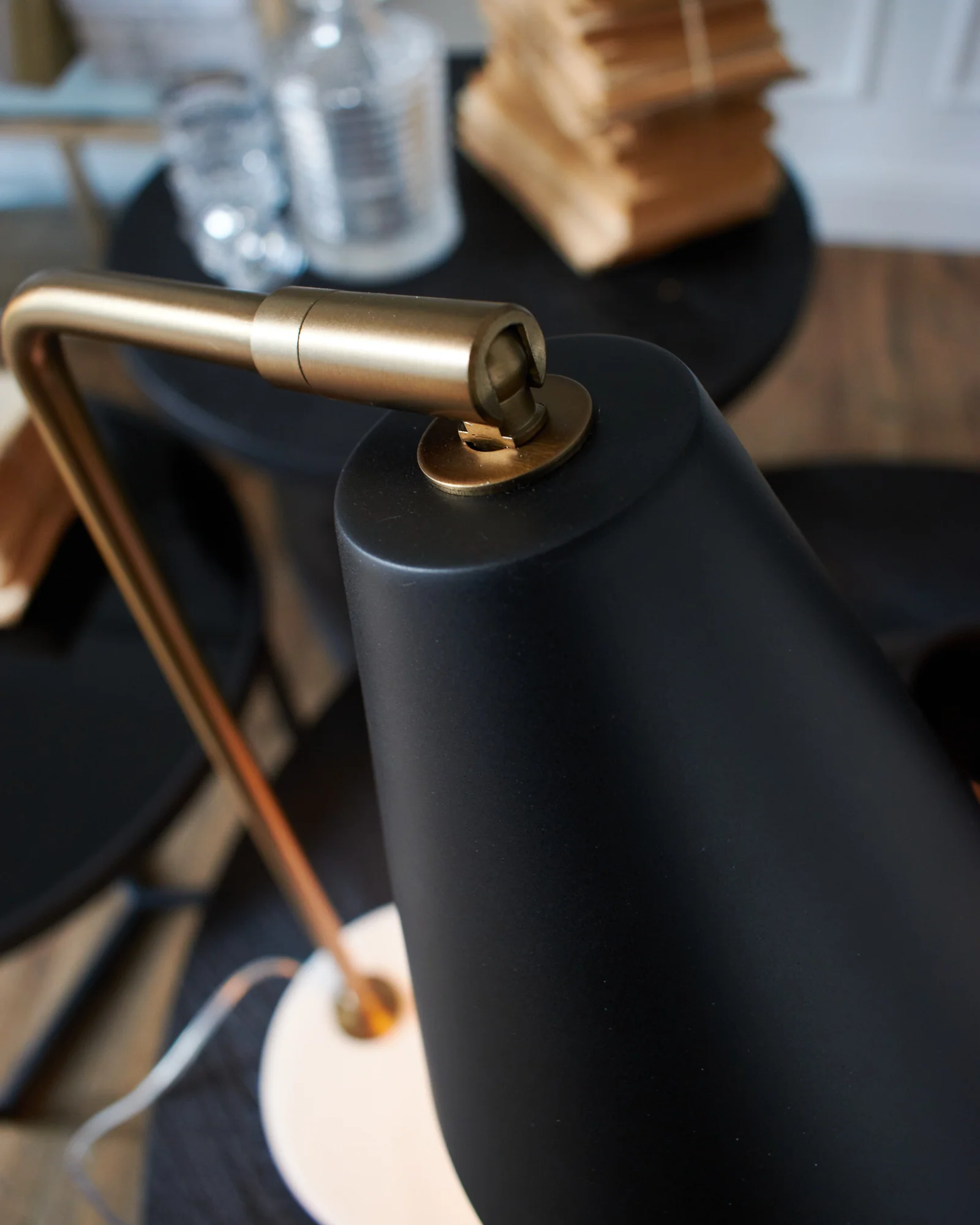 - materiali: marmo bianco, metallo color bronzo satinato e paralume in metallo colore nero opaco