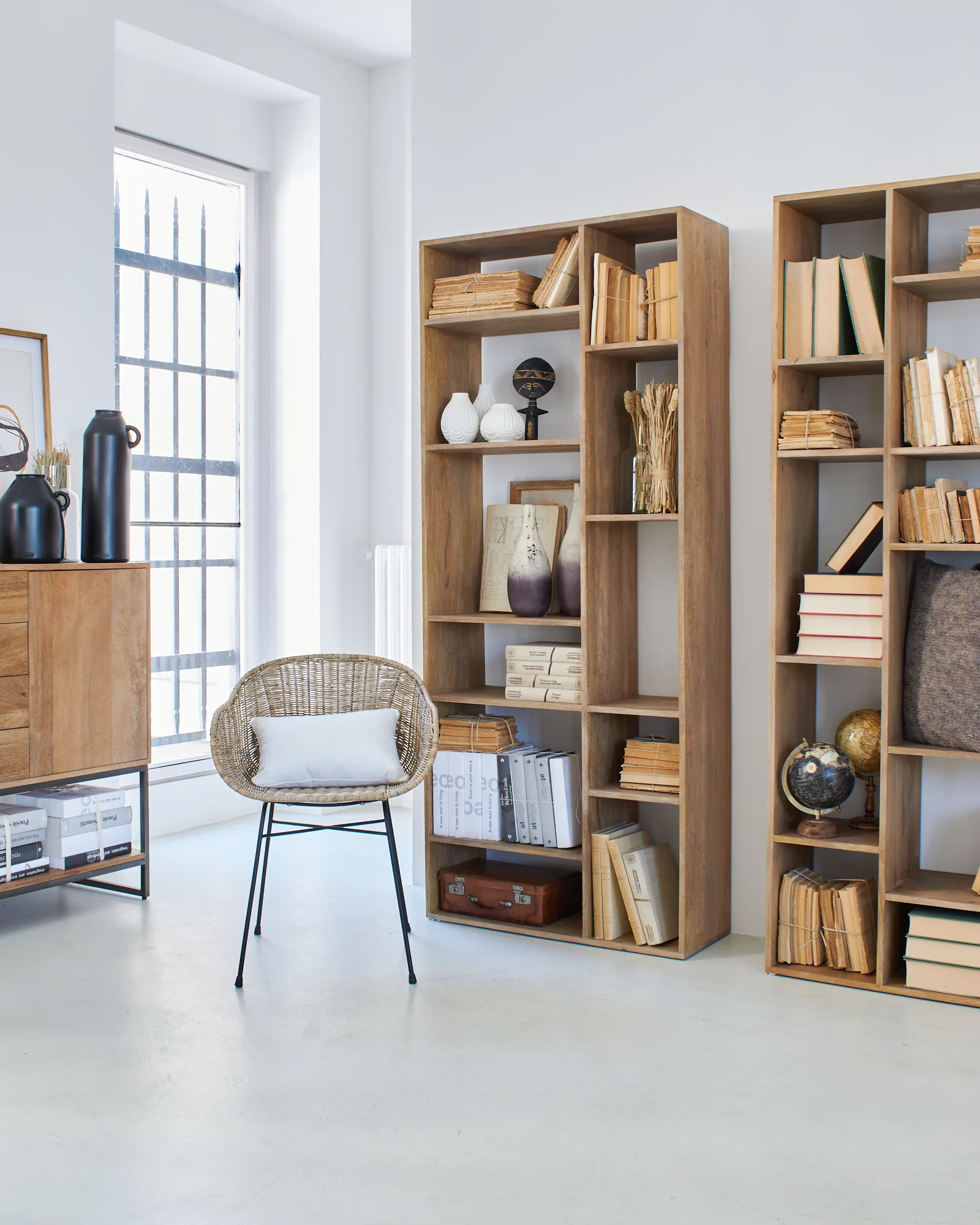 La libreria modulare in legno Skyline è un pezzo di arredamento di design moderno e essenziale. Realizzata in legno di mango massello con finitura naturale color miele è una libreria moderna di design dalle linee essenziali e pulite. Particolarmente versatile può essere utilizzata sia in verticale sia in orizzontale e non avendo nessun profilo laterale può essere affiancata ad altre librerie per una parete di grande effetto o ancora come divisorio in un grande ambiente.