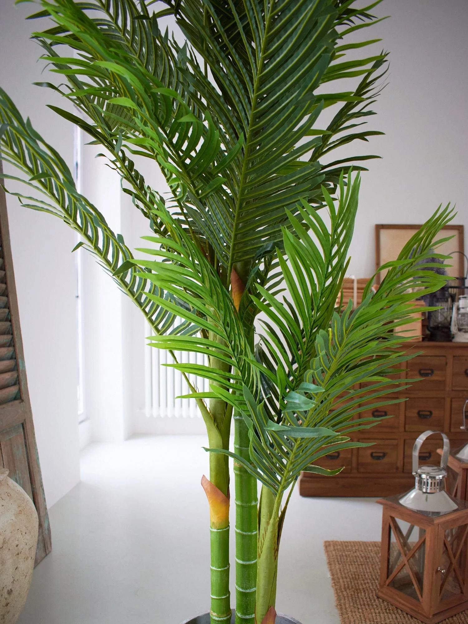 Portate un angolo di verde nei vostri ambienti con la palma artificiale Kwai, realizzata in modo estremamente realistico e dotata di vaso in plastica di colore nero. Questa pianta di grandi dimensioni sarà in grado di valorizzare qualsiasi ambiente e si presta a essere abbinata alle tante altre piante proposte nella nostra selezione.