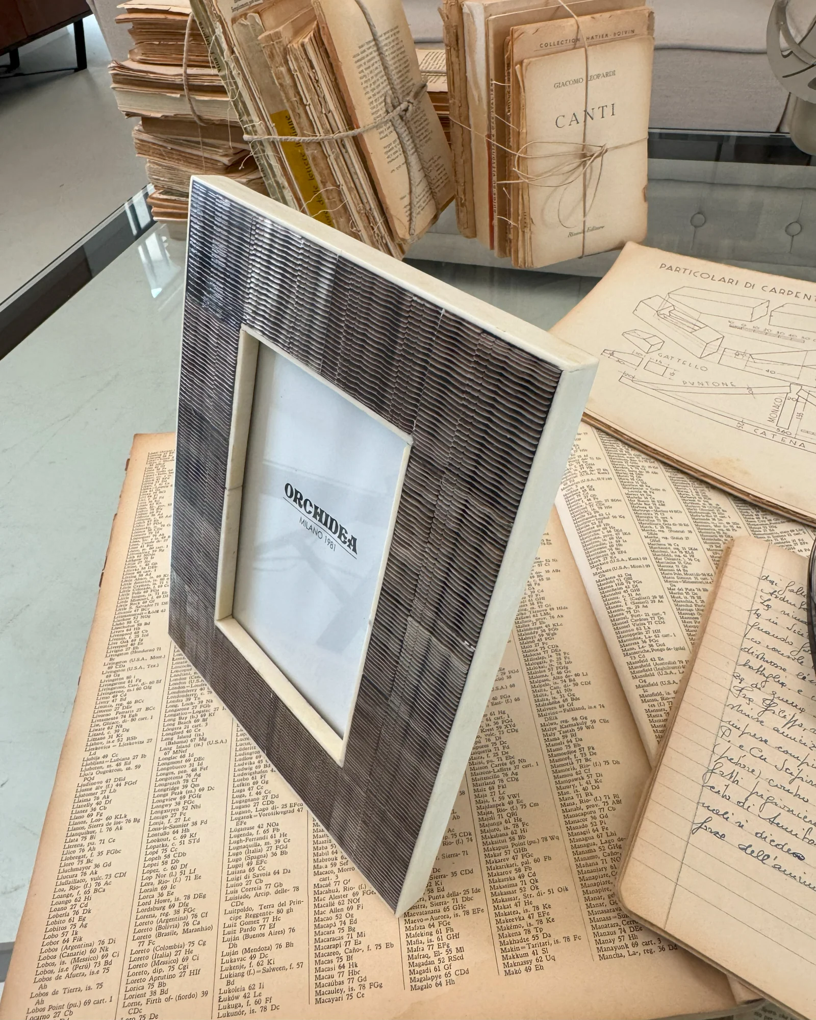 Il portafoto Chrysler White è realizzato con tessere in corno lavorato a squame applicate su un supporto in legno e impreziosito da tanti dettagli che lo rendono unico e ne ingentiliscono le forme, come i bordi esterni e interni in osso sbiancato. Con la originale lavorazione artigianale che esalta la matericità del prodotto, rappresenta un oggetto elegante e raffinato, perfetto per decorare con stile la tua casa.