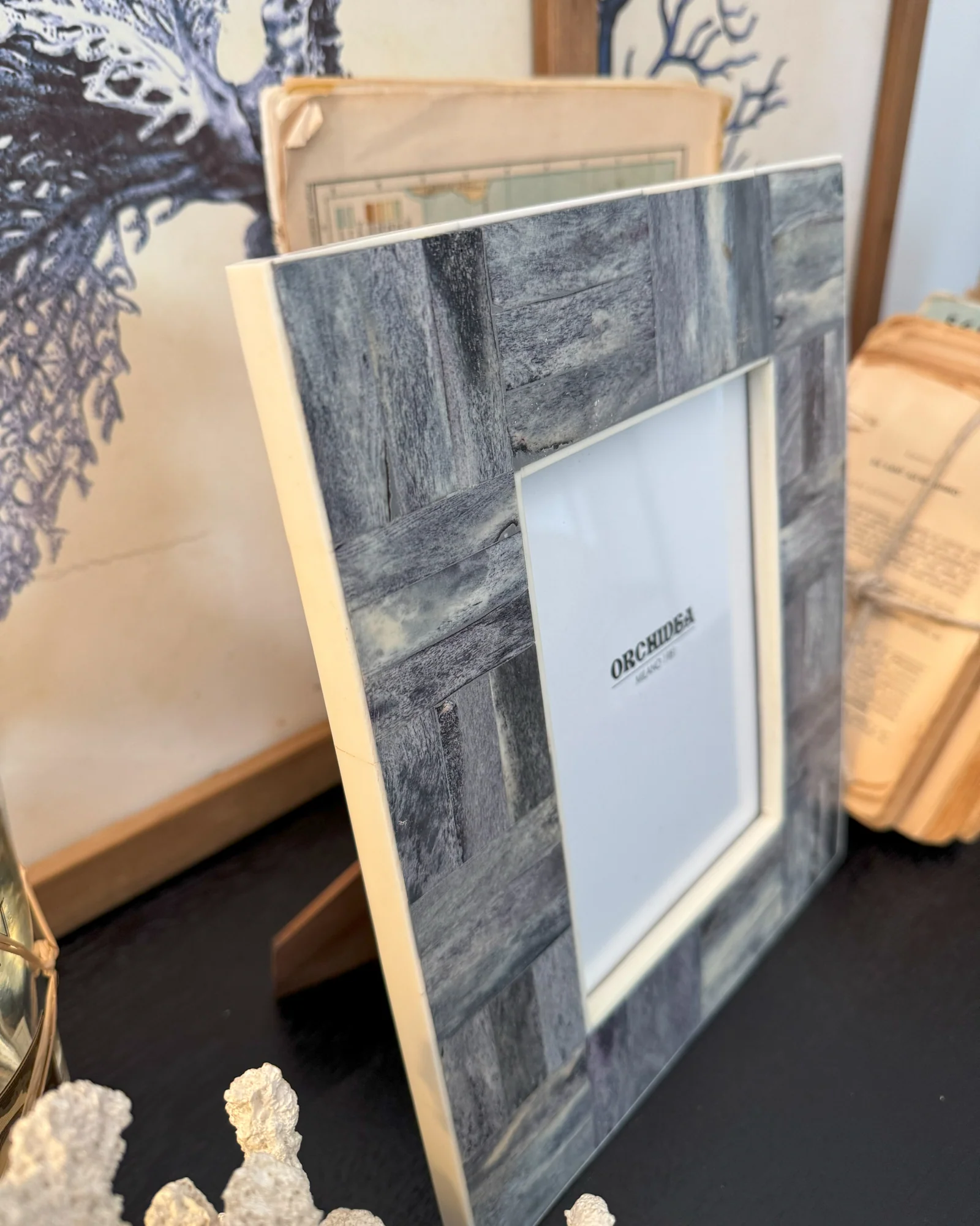 Portafoto con cornice in osso Dusty Blue Edge