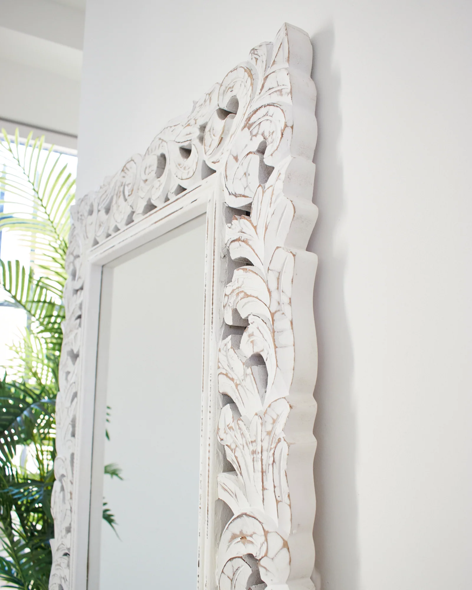 Rendete la vostra casa più viva e fresca con la specchiera a figura intera in legno di mango massello Astypalea dal magnifico colore bianco anticato. Le sue dimensioni generose e il prezioso intaglio, eseguito artigianalmente da mani sapienti e capace di esaltare la bellezza del legno, sapranno dare un tocco di eleganza ai vostri spazi e di profondità anche agli ambienti più ridotti. Gli specchi lunghi da parete sono diventati un vero must have dell'arredo contemporaneo: basterà anche semplicemente appoggiarli a pavimento per dare una nuova connotazione a qualunque spazio abitativo.