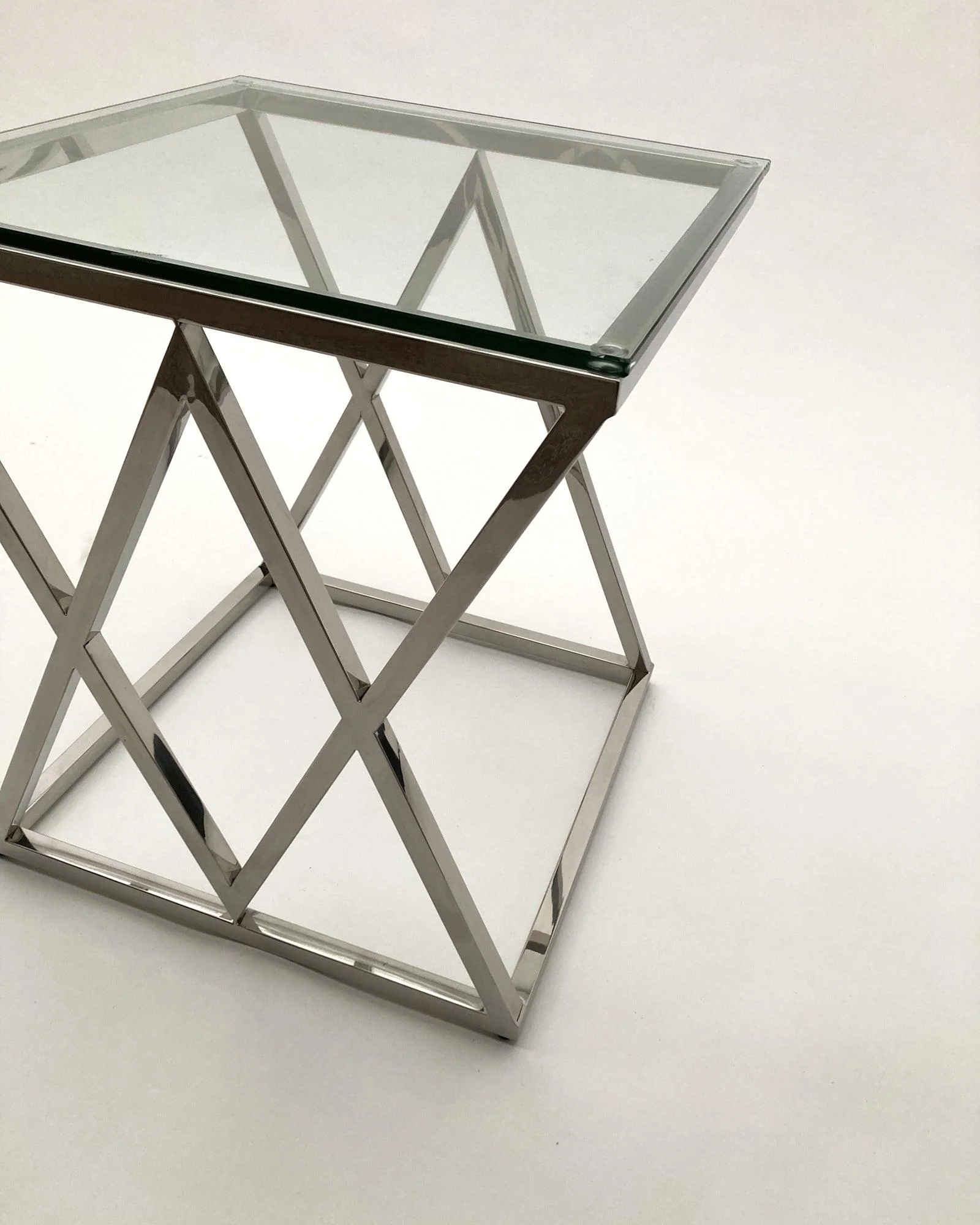 Tavolino da salotto quadrato in acciaio e vetro Madison Avenue 50 cm