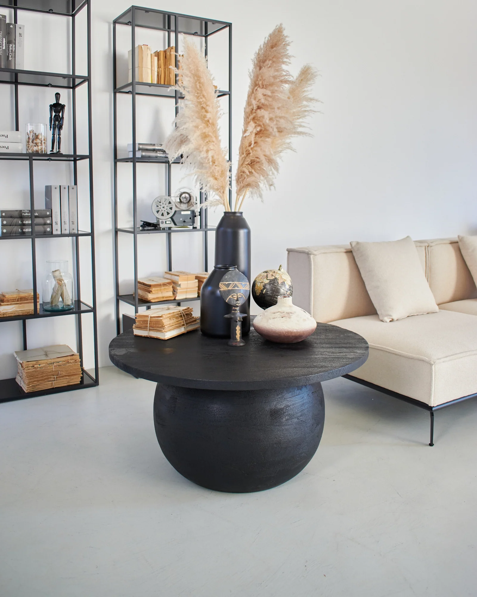 Il tavolino rotondo moderno Dark Raw è realizzato in legno di mango massello dalla magnifica finitura sabbiata e invecchiata e caratterizzato dall'inusuale colore nero opaco. Il suo design semplice e pulito, dalle forme spiccatamente geometriche, contrasta con la preziosa opulenza della lavorazione del legno, protagonista indiscusso di questo elemento di arredo. Consigliamo l'abbinamento all'altro modello più piccolo della collezione da d.cm.53h.61.