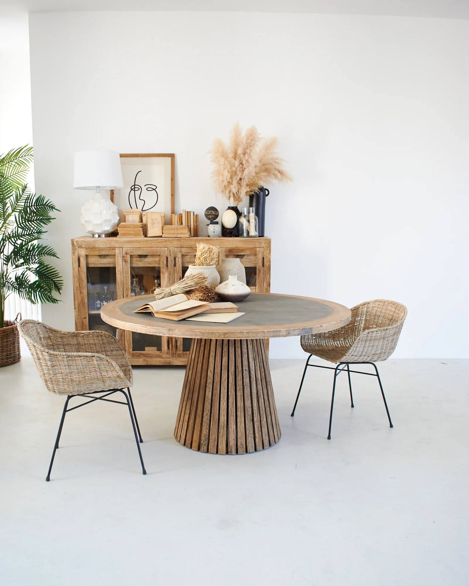Tavolo rotondo in legno massello con top in zinco Elafonissos 140 cm